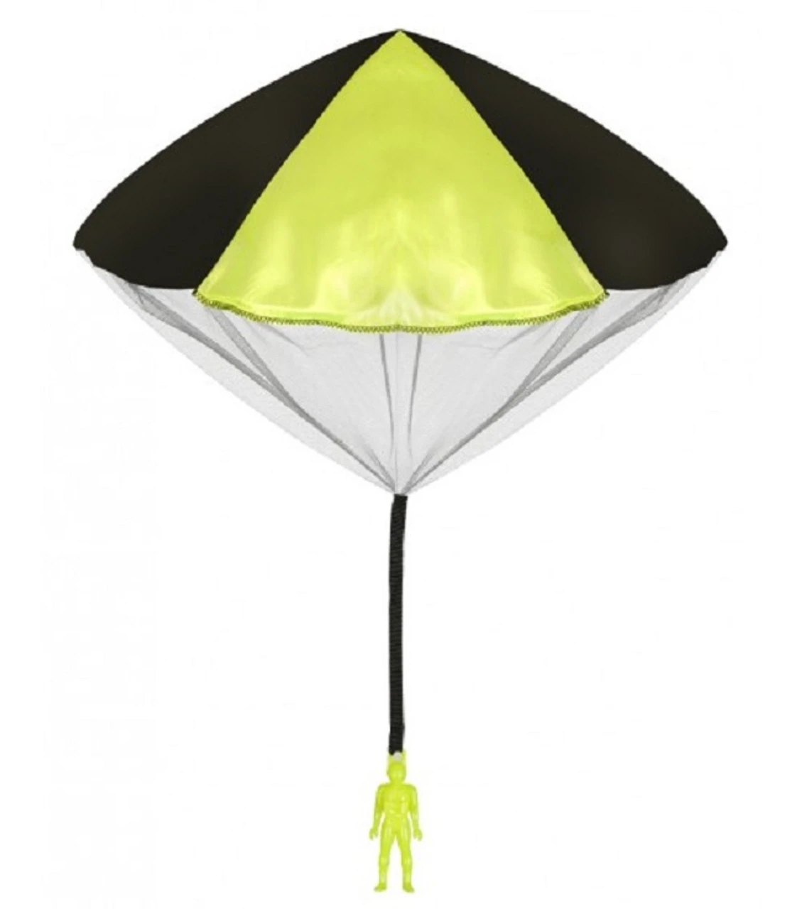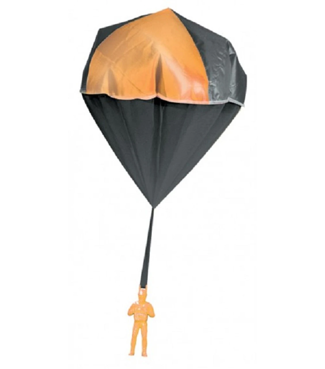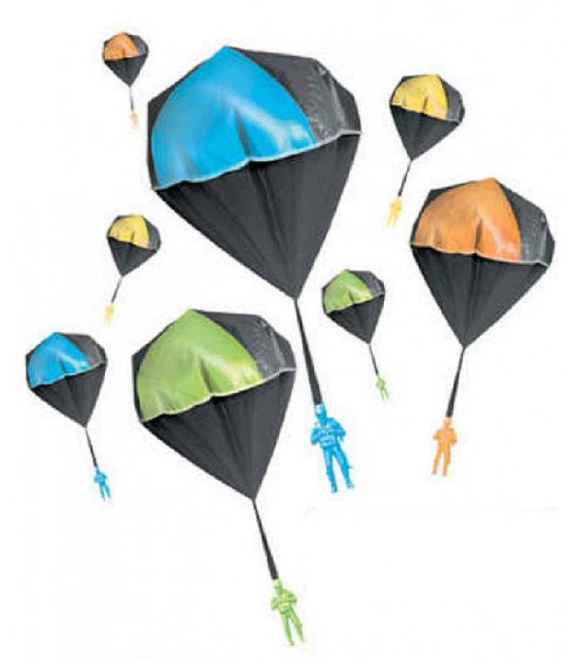 Plastic paratrooper and parachute in assorted colors.