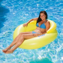 50″ Inflatable Yellow Water Pop Floating Lounger With Black Mesh Seat